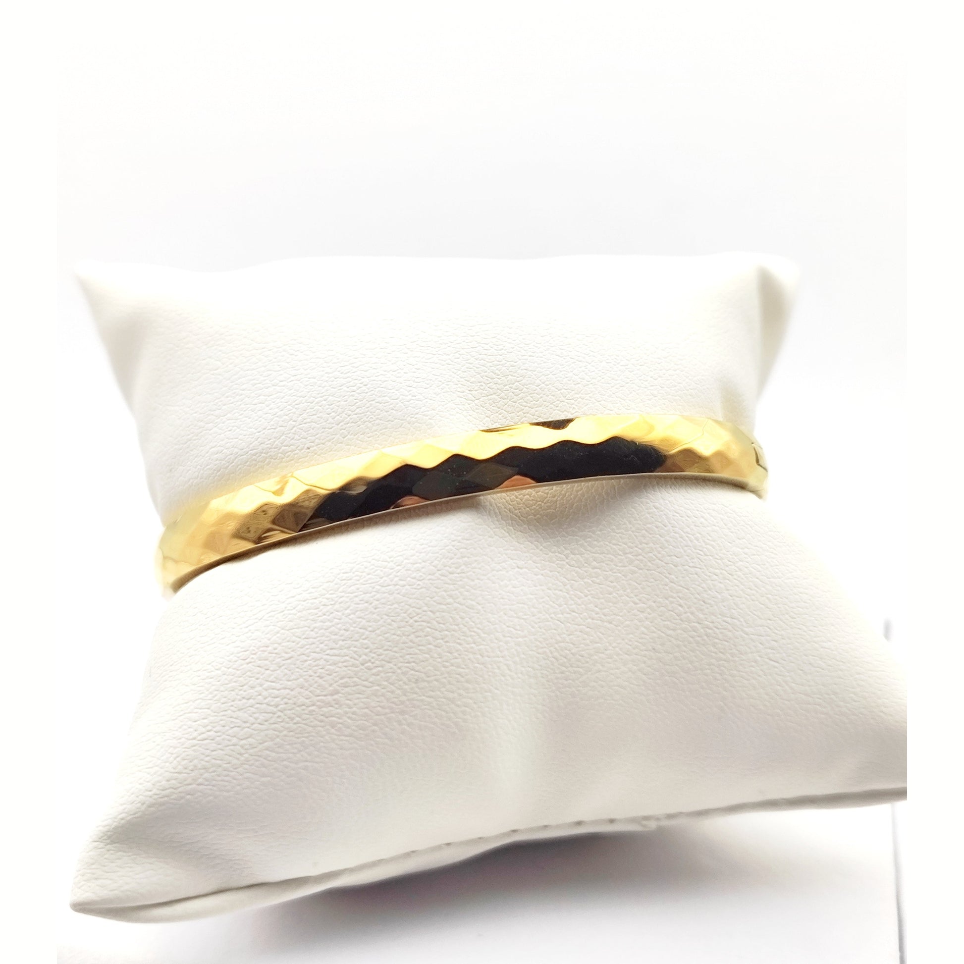 Each bracelet features a durable clasp that ensures a secure fit and long-lasting wear. Wear them solo for a subtle statement or stack all three colors together for a bold, layered effect. The refined hammered texture catches the light beautifully, making these cuffs an effortless way to enhance your jewelry collection.