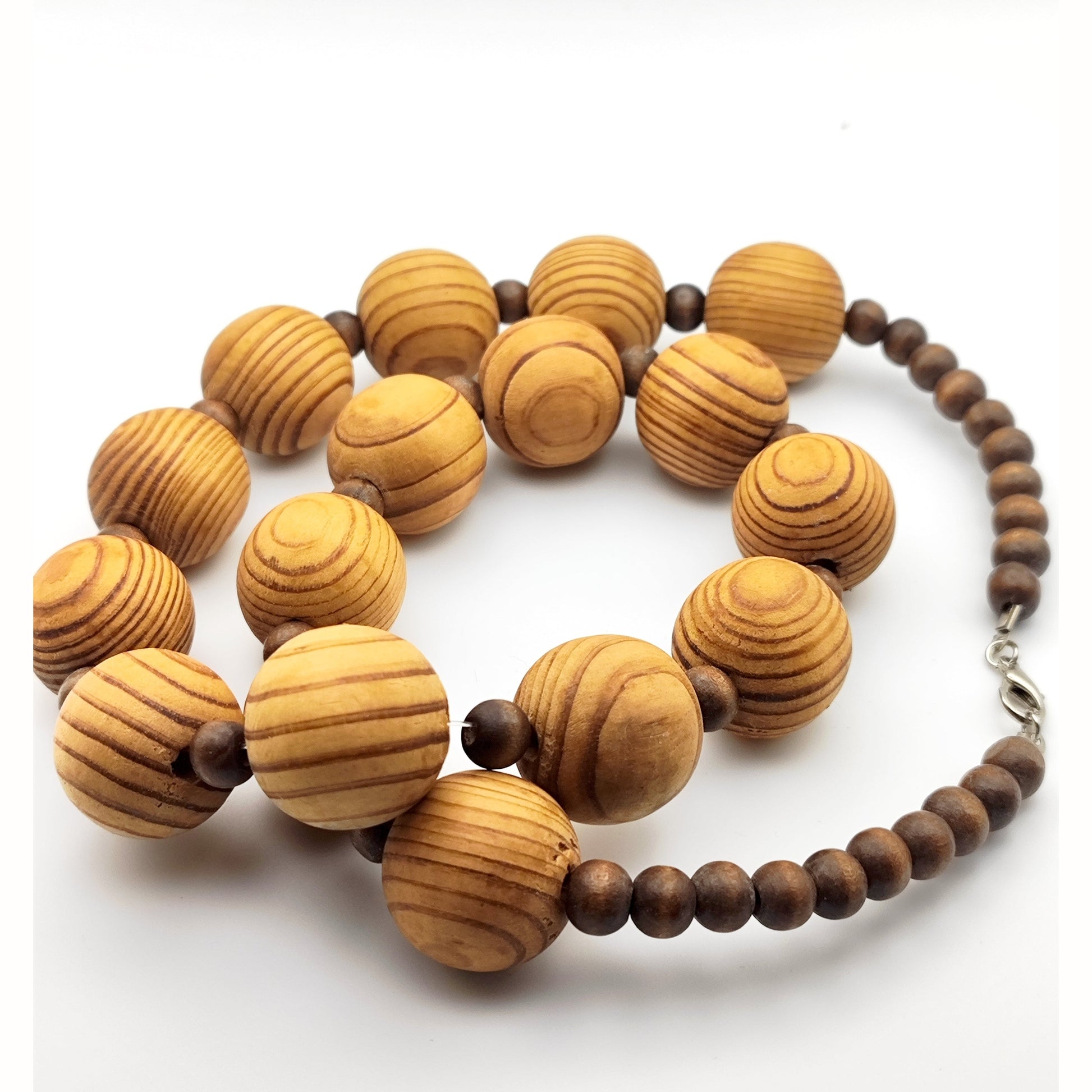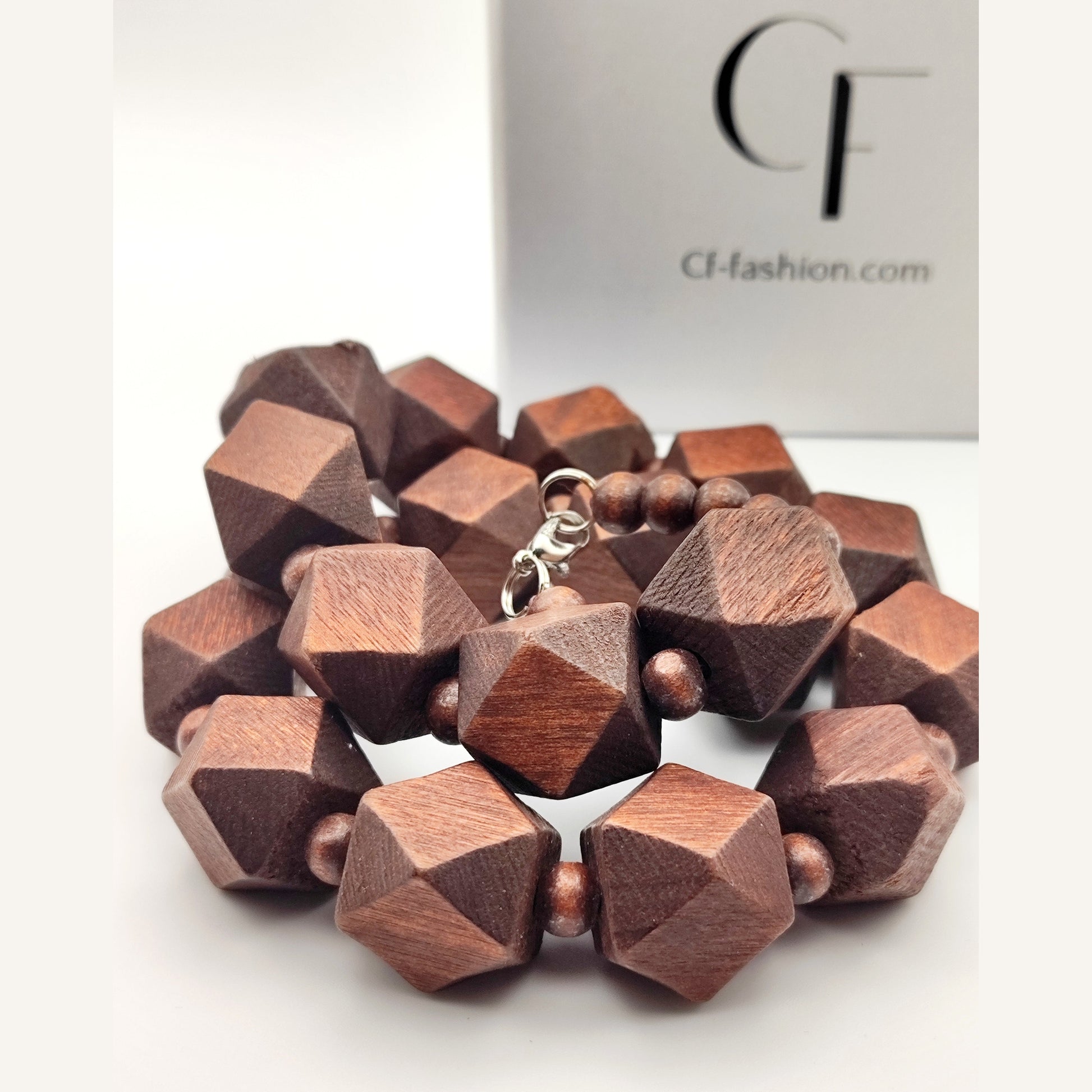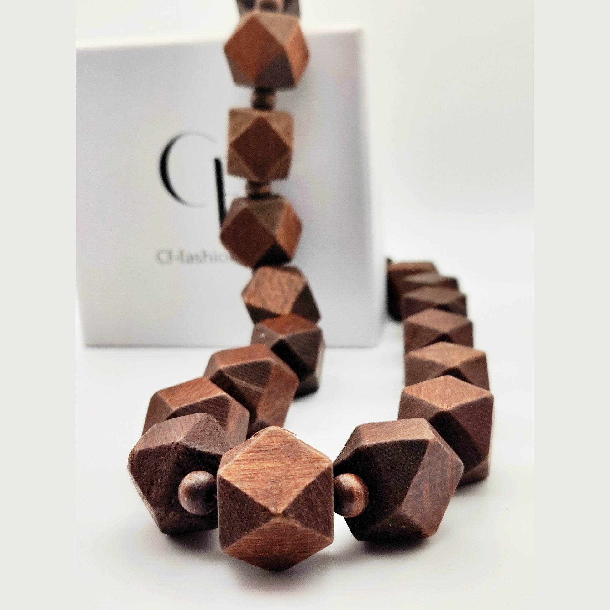 Embrace earthy elegance with this handmade wooden bead necklace that combines modern geometry with the warmth of natural materials. Featuring large faceted dark wood beads paired with smooth light wood spheres showcasing beautiful natural grain, this statement piece brings organic sophistication to any outfit. Lightweight and comfortable to wear, it’s perfect for both casual looks and special occasions. A unique accessory that reflects your love for sustainable, natural jewelry and artisanal craftsmanship.