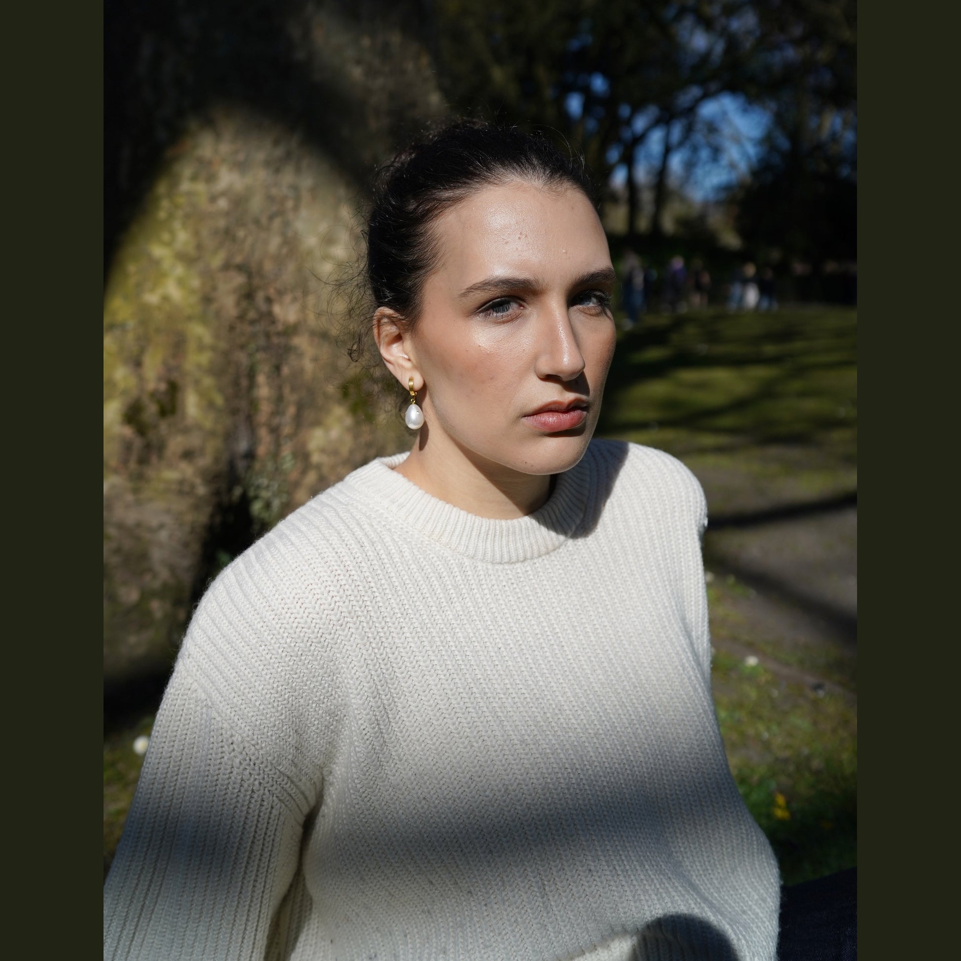 Pearl: Imitation teardrop with embedded clear crystals